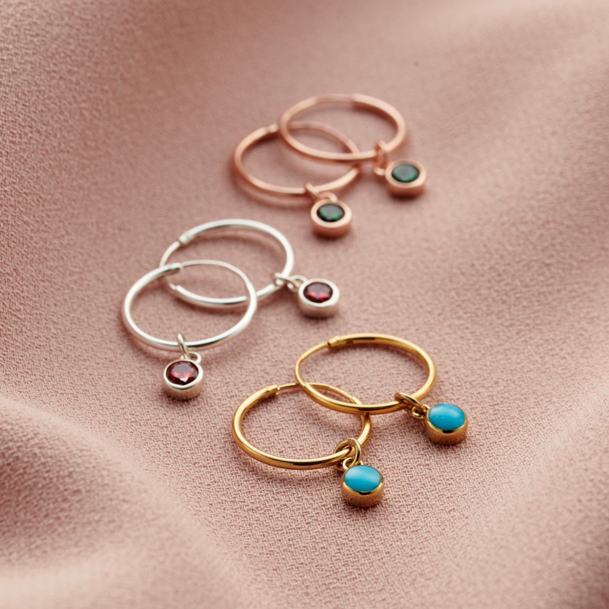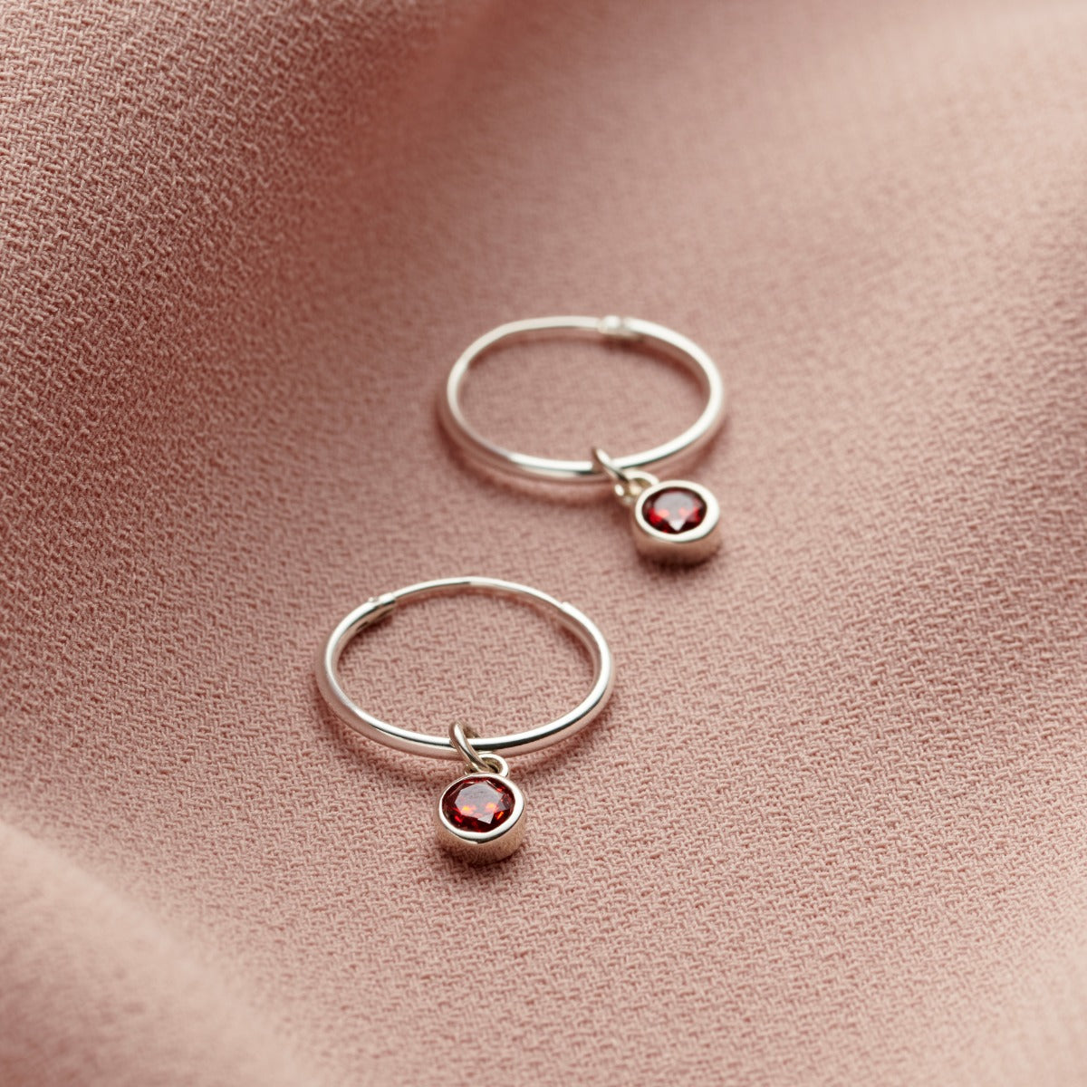 These stunning sterling silver hoop earrings are the perfect addition to any outfit. Our jewellers adorn each hoop with stunning birthstone charms. We can also plate these birthstone earrings with optional 18ct Yellow Gold or 18ct Rose Gold plating. A beautiful unique gift for someone special on their birthday or just to show you care.
