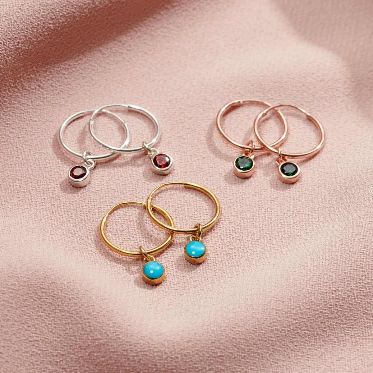 Birthstone Charm Hoop Earrings