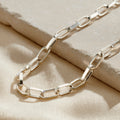 This gorgeous chunky necklace features freely moving large links that are made from Sterling silver and make this chunky chain link necklace the perfect addition to any jewellery collection. We love this chain layered with other necklaces at different lengths to create a truly unique and stylish look. Our jewellers can plate this chunky chain-link necklace with your choice of 18ct Yellow Gold or 18ct Rose Gold plating.