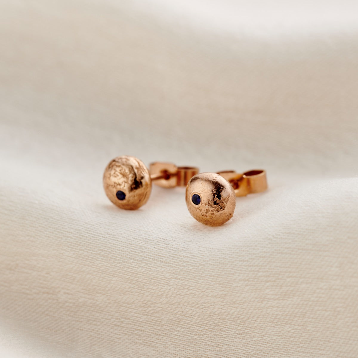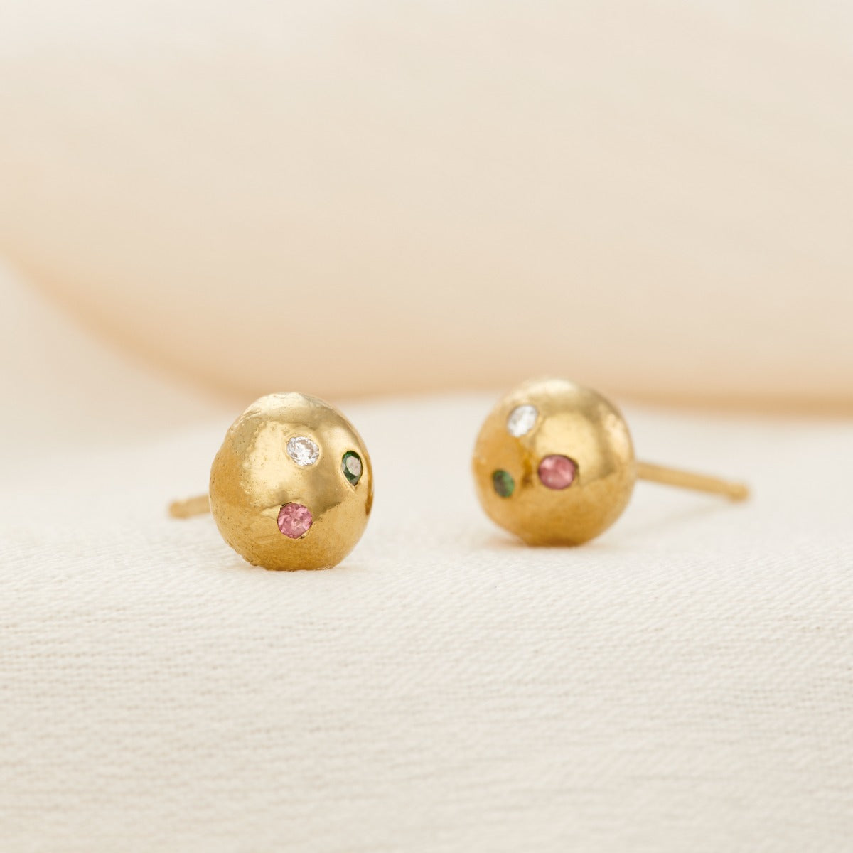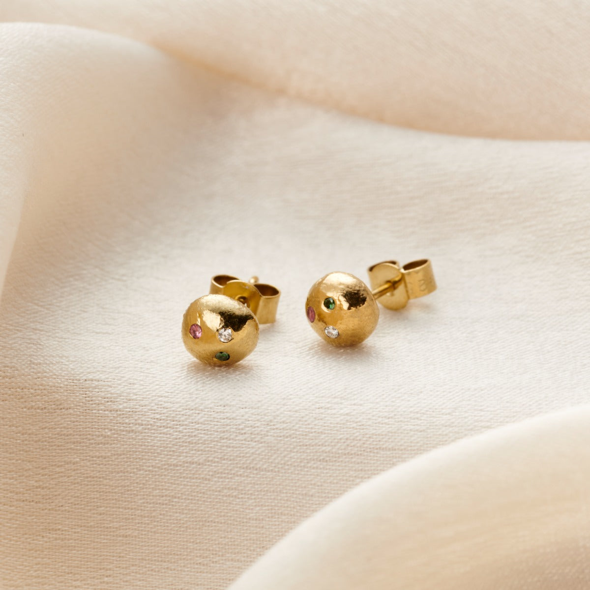 These unique birthstone earrings are made by hand by our jewellers. Using Sterling Silver recycled here in our workshop, each stud is formed using a method that will make each one truly unique. Our jeweller's can handset your chosen birthstone into each stud. With the option to add up to three birthstones per stud these birthstone stud earrings are the perfect personalised gift for mums to many.