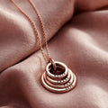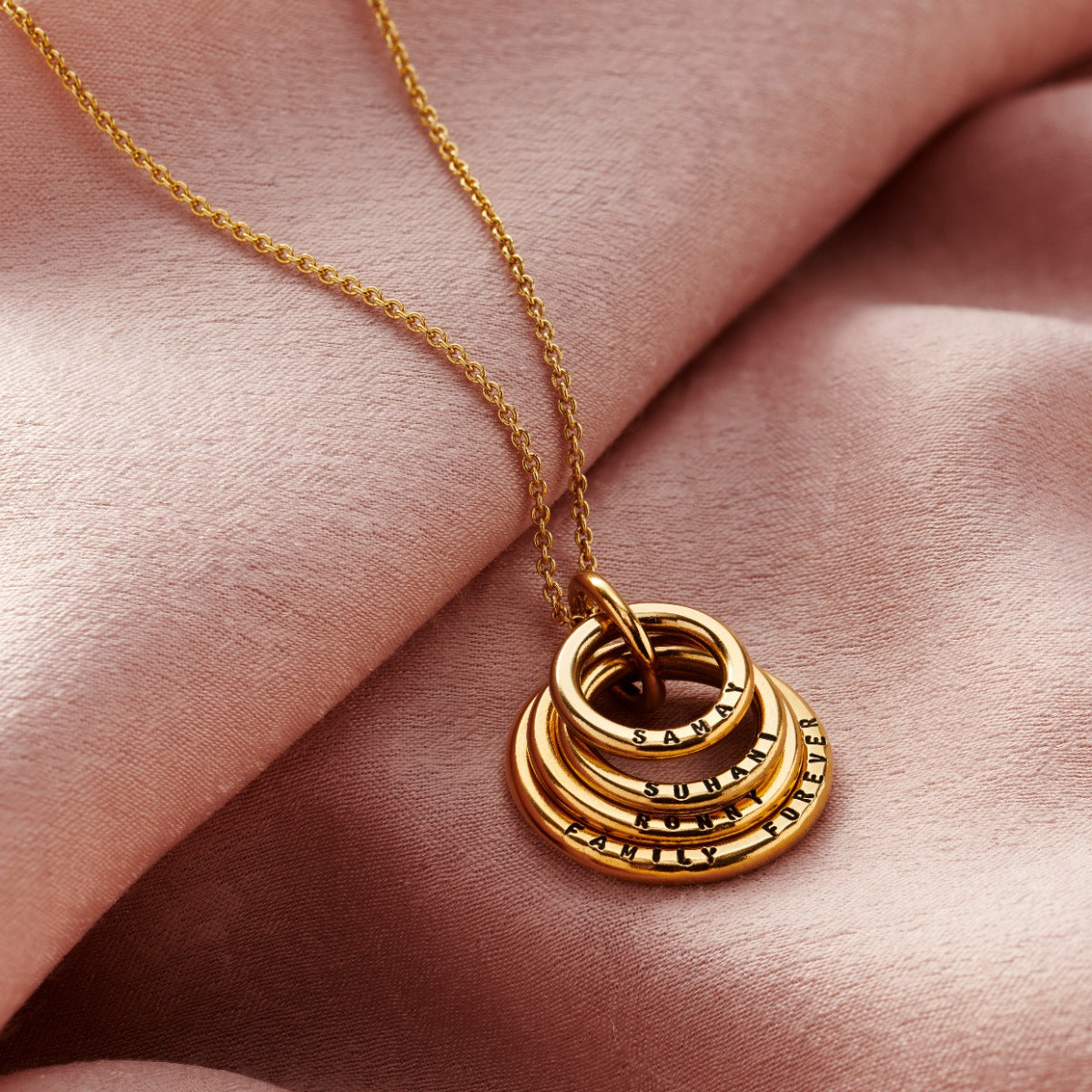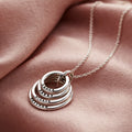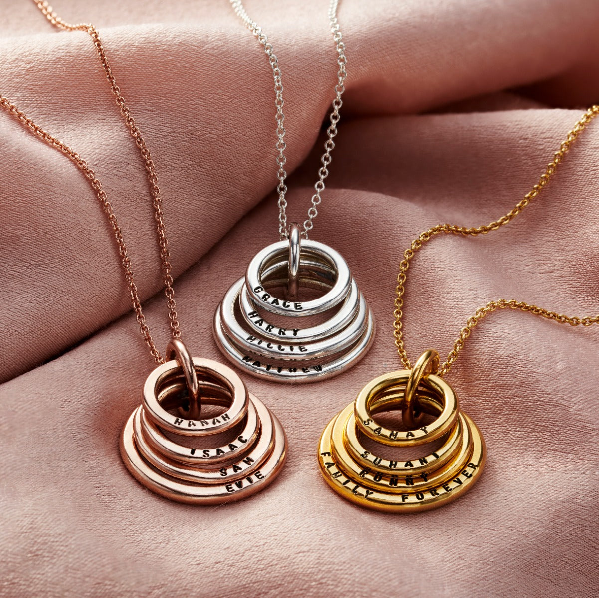 Carry your loved ones close to your heart at all times with the gorgeous Personalised Deluxe Family Names Necklace. A variation on our bestselling Personalised Family Names Necklace, this design has an additional ring for even more personalisation - perfect for those with a large family or lots of words to say. Four sleek sterling silver ring pendants are suspended from a sterling silver chain, ready for your choice of personalisation. We love this piece personalised with family names, other popular personalisations include special dates, song lyrics, quotes and meaningful personal sentiments. The Personalised Deluxe Family Names Necklace makes a wonderful gift for any occasion, especially suitable for both new mums and those we have had years to be grateful for.