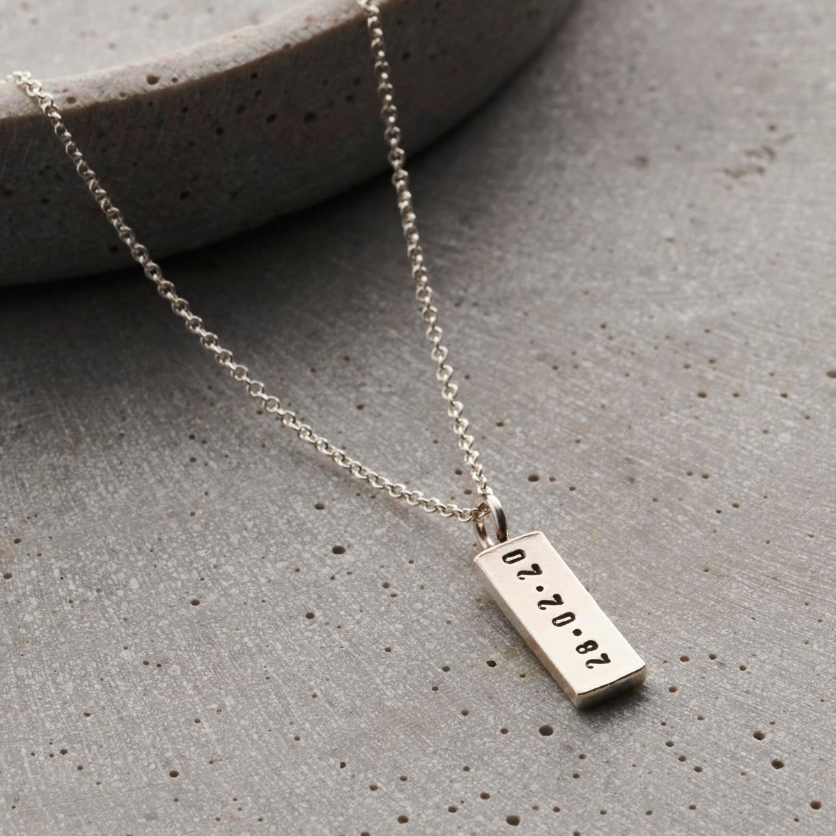 This personalised necklace is the perfect gift for yourself or for a loved one. We often see this necklace personalised with special dates to celebrate birthdays or anniversaries. Or short names and initials as a gift for a dad with the initials of their children, such as 'DSS' or 'A&B'.