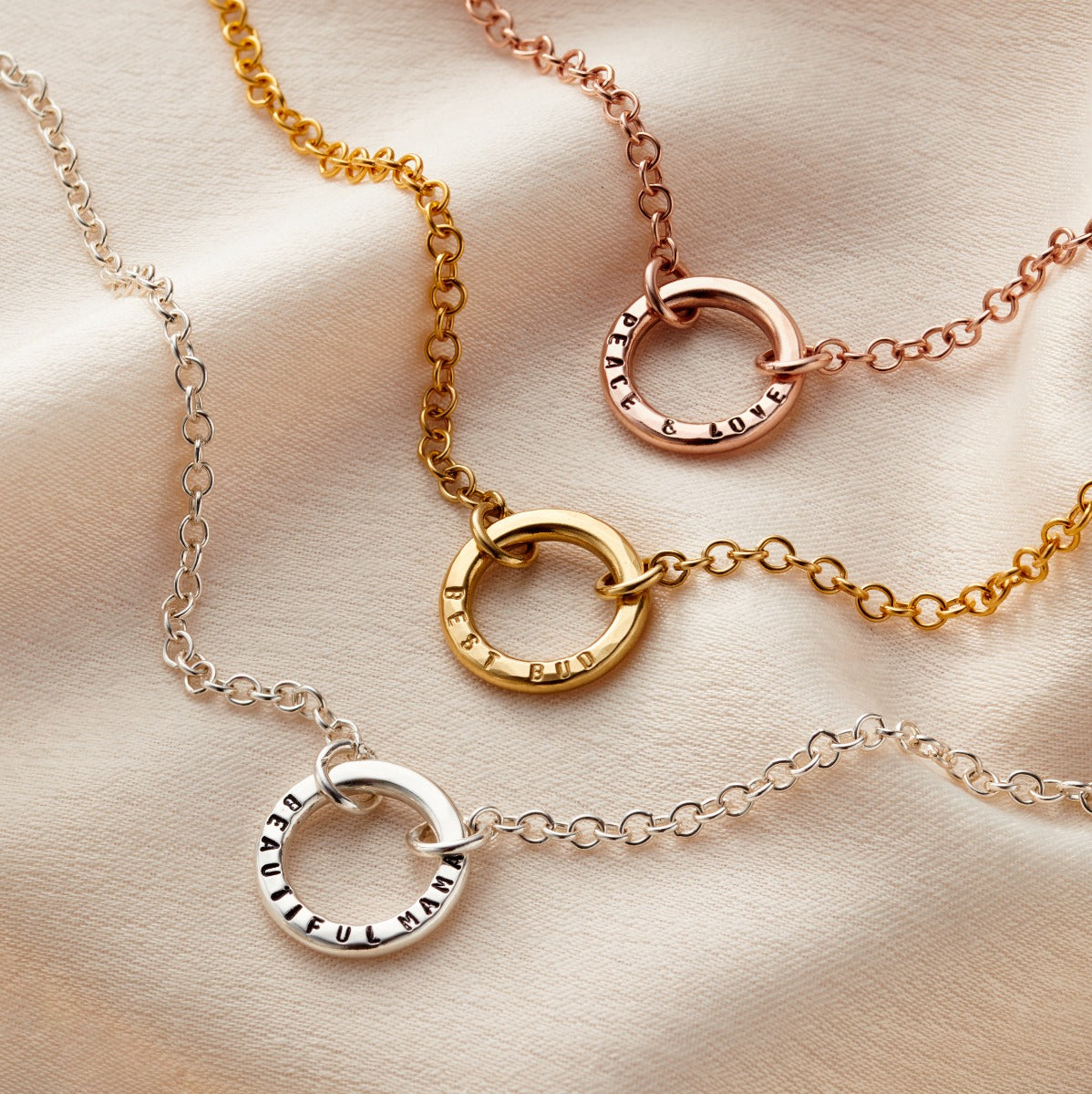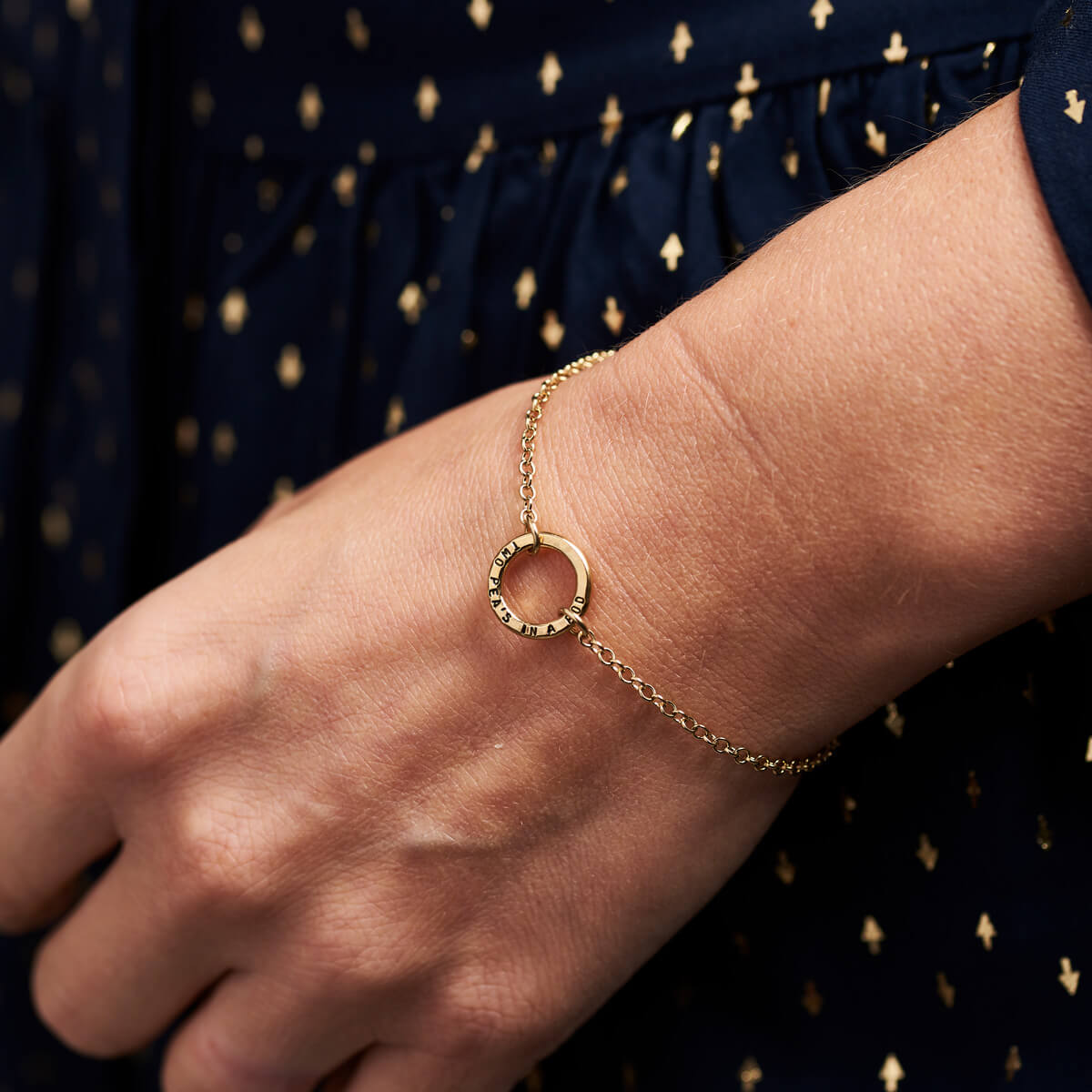 Carry a special message with you always with the dainty Personalised Mini Message Bracelet. Handcrafted and hand-stamped in our Brighton workshop, the bracelet features a simple circle charm suspended from a sleek bracelet chain. The perfect wear-with-anything piece, the Personalised Mini Message Bracelet makes a gorgeous gift for any occasion. Each bracelet is individually handmade from Sterling silver with optional 18ct gold plating available for a luxe finish.
